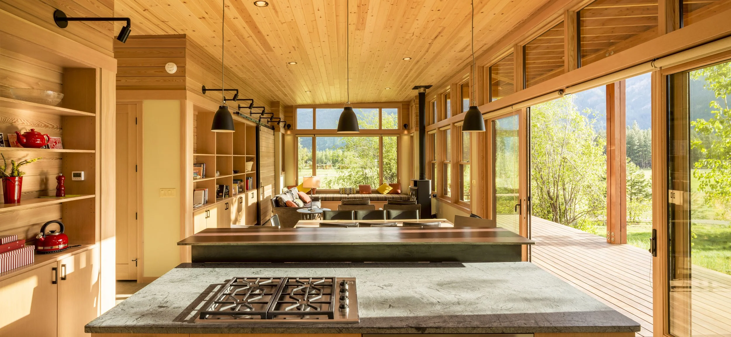 Tucked against Flagg Mountain in Mazama, WA, Big Rock House looks out upon the meadow towards the North Cascades. Its form rises up to capture the view and to achieve a sense of living in and around the mountains.