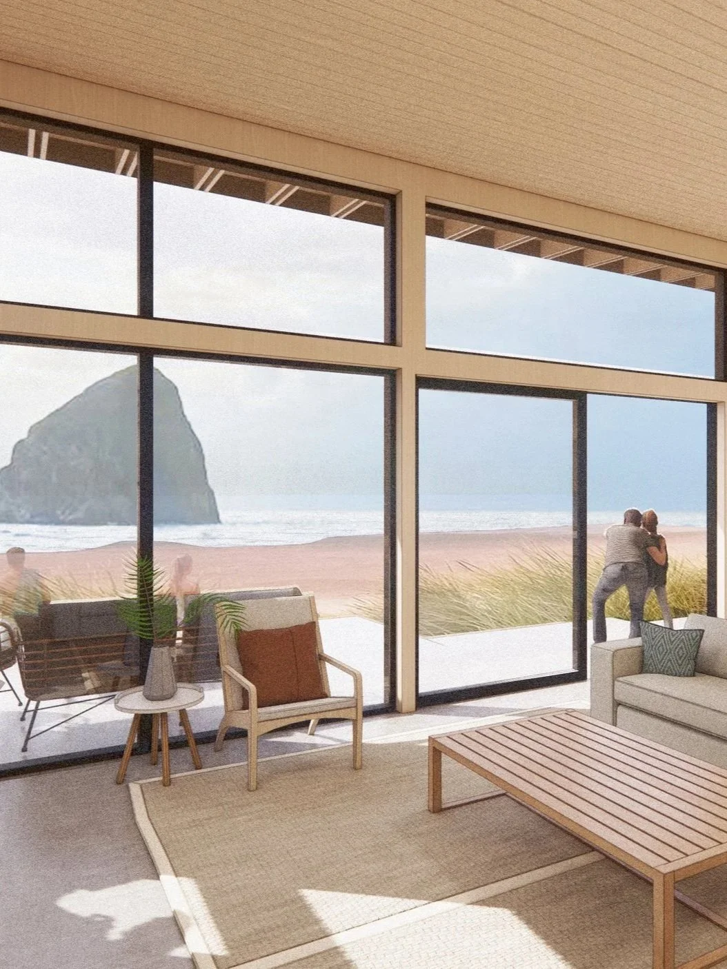 Longtime visitors to Pacific City, the owners sought a light, open retreat distinct from their traditional Craftsman home in Portland. Modern in form and grounded in natural materials, the house offers a setting for gathering that reflects the colors and atmosphere of the beach.
