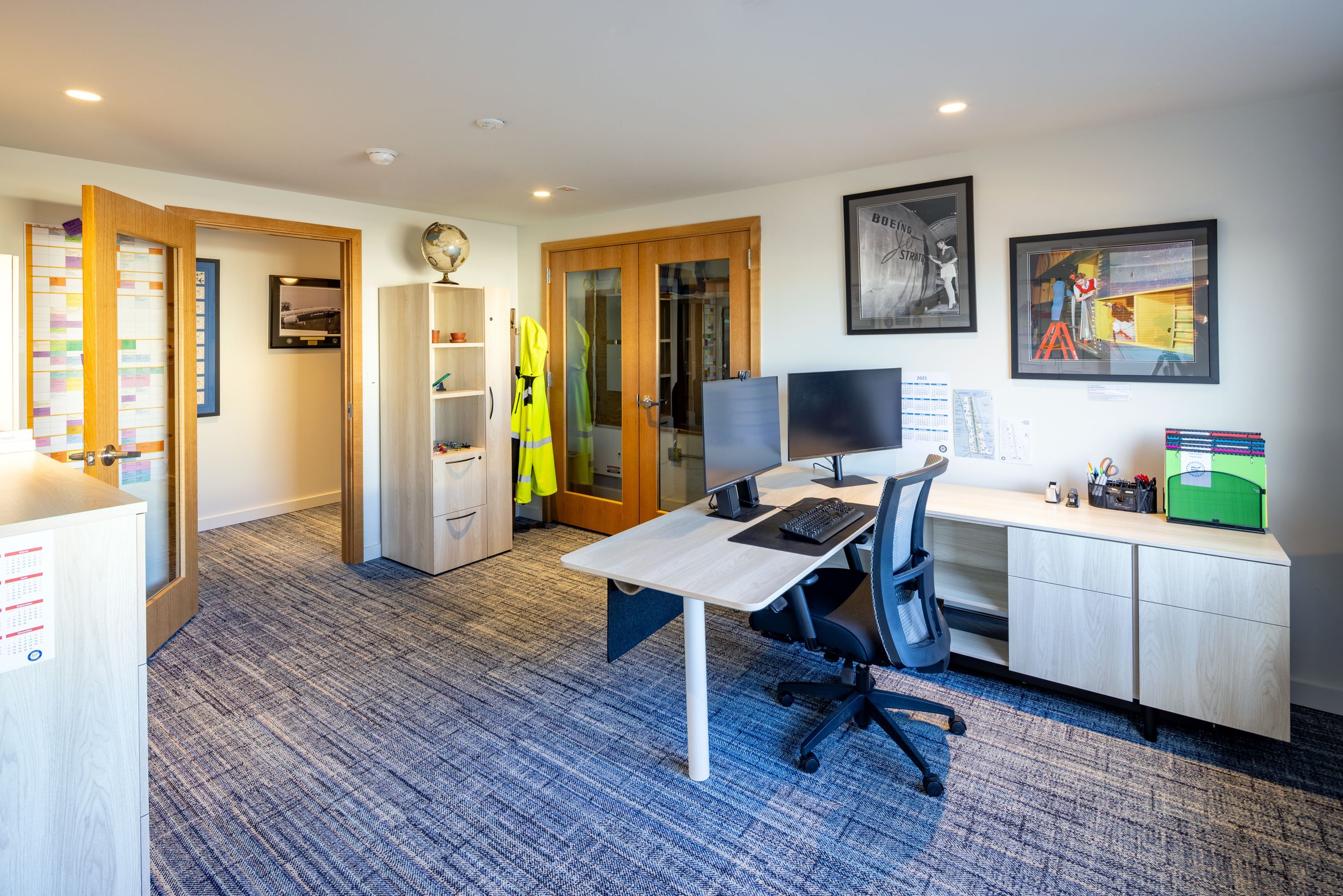 JA’s Interior Design Studio was selected to reimagine the Renton Municipal Airport’s pilot’s lounge and administrative offices. The small airport in a Seattle suburb is experiencing an uptick in travel and some of their existing facilities are past their useful life. The client identified an existing mid-century building on the aviation campus to repurpose into an inviting amenity lounge for pilots, as well as employee offices and breakroom.